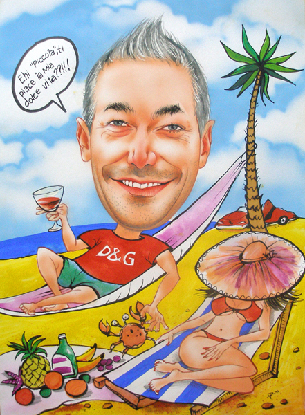 Ваш муж заядлый трудоголик, и вы никак не можете уговорить его поехать куда-нибудь на выходные. Никогда не стоит сдаваться. Как известно, мужчины тоже любят комплименты. Подарите ему такую смешную картину с его изображением, сказав следующую фразу: «Милый, отдых тебе так к лицу!». Помните подарки мужчинам так нужны, так нужны! И по этому ваши слова в купе с подарком обязательно польстят его самолюбию, и возможно, поезд тронется с места. И вы в нем в жаркие страны на долгожданный отдых