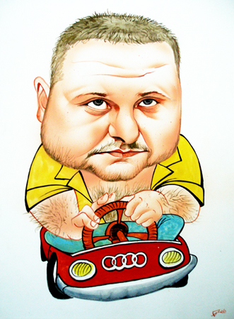 шарж "Автолюбитель за рулём". Этот подарок напомнит не только тяжёлую трассу, но и соседа, который всегда готов прийти на помощь вашей жене. Автолюбитель за рулём - это своего рода памятник-шарж:" Будь дома шофёр! Иначе, жену уведут как машину!" Подарите оригинальный