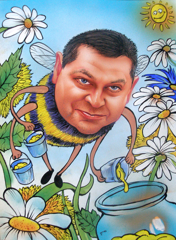 шарж тому, кто без устали тянет что-то в дом. Нужное, а иногда и не очень. Тянет с работы то, что плохо лежит. Не то, чтобы он «несун» был или вор, ни в коем случае. Скорее пчелка-трудяга, но никак не трутень. В общем, человек без меры хозяйственный.
