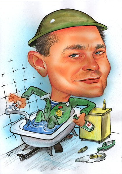 Что подарить сантехнику, у которого уже давно есть полный набор нужных и не очень инструментов? Ну, не банальную же бутылку водки, в конце концов! Подарите этому укротителю водной стихии, дрессировщику кранов и смесителей такой забавный презент как шарж. Ведь любой человек больше всего на свете любит себя, единственного и неповторимого.