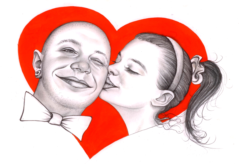 Романтический подарок для двоих! Что может быть романтичнее чем этот шарж-поцелуй, на фоне красного сердца - символа влюбленных. Такой милый подарок будет очень приятен вашей девушке или парню в подарок на какй-нибудь романтический праздник,