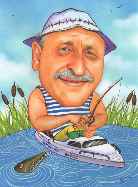 смешная картина, ведь как ещё похвастаться всем своим плавсредством, как не на картинке весёлой. Не всех же тащить на реку и показывать своё сокровище с веслом. А уж если затащит вас, то обязательно настоит на том, чтоб и вы попробовали погрести. Учтите, байдарка не очень-то устойчива на воде. Не успеете оглянуться, как в воду плюхнетесь. Поэтому, чтоб себя обезопасить от такой перспективы, подарите байдарочнику